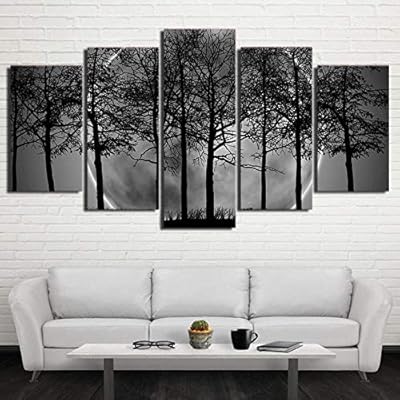 Canvas Painting 5 Beautiful Forest Black White Gray Canvas